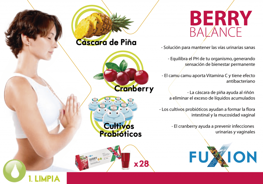 Deliciosa bebida de arándanos y super frutas exóticas, creada por FuXion para mantener saludable tu tracto urinario, prevenir infecciones y equilibrar tu PH. ¡Una maravilla!