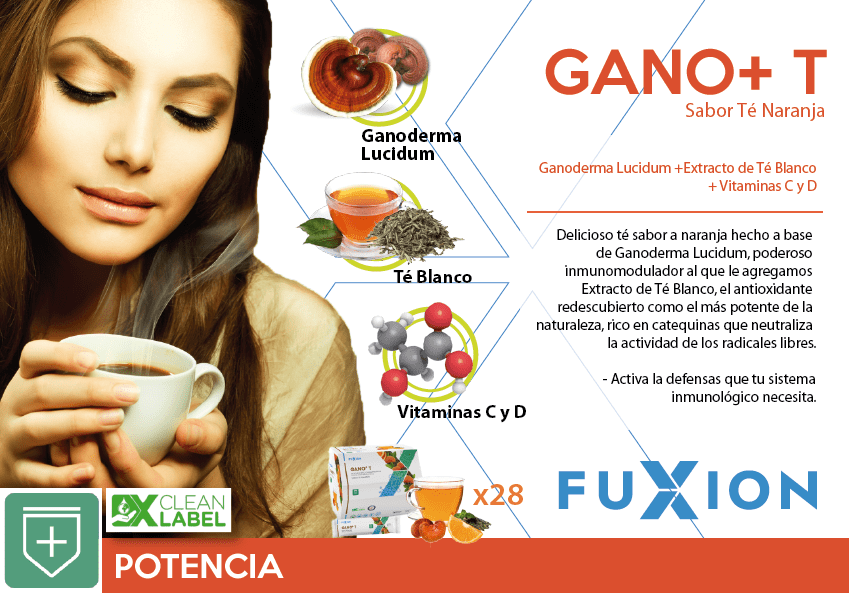Gano+ T ayuda a mejorar la respuesta inmune y la defensa antioxidante, gracias al Ganoderma Lucidum hongo chino reconocido por su capacidad anti-oxidante, anti inflamatoria y anti tumoral. Su consumo regular te ayuda a: