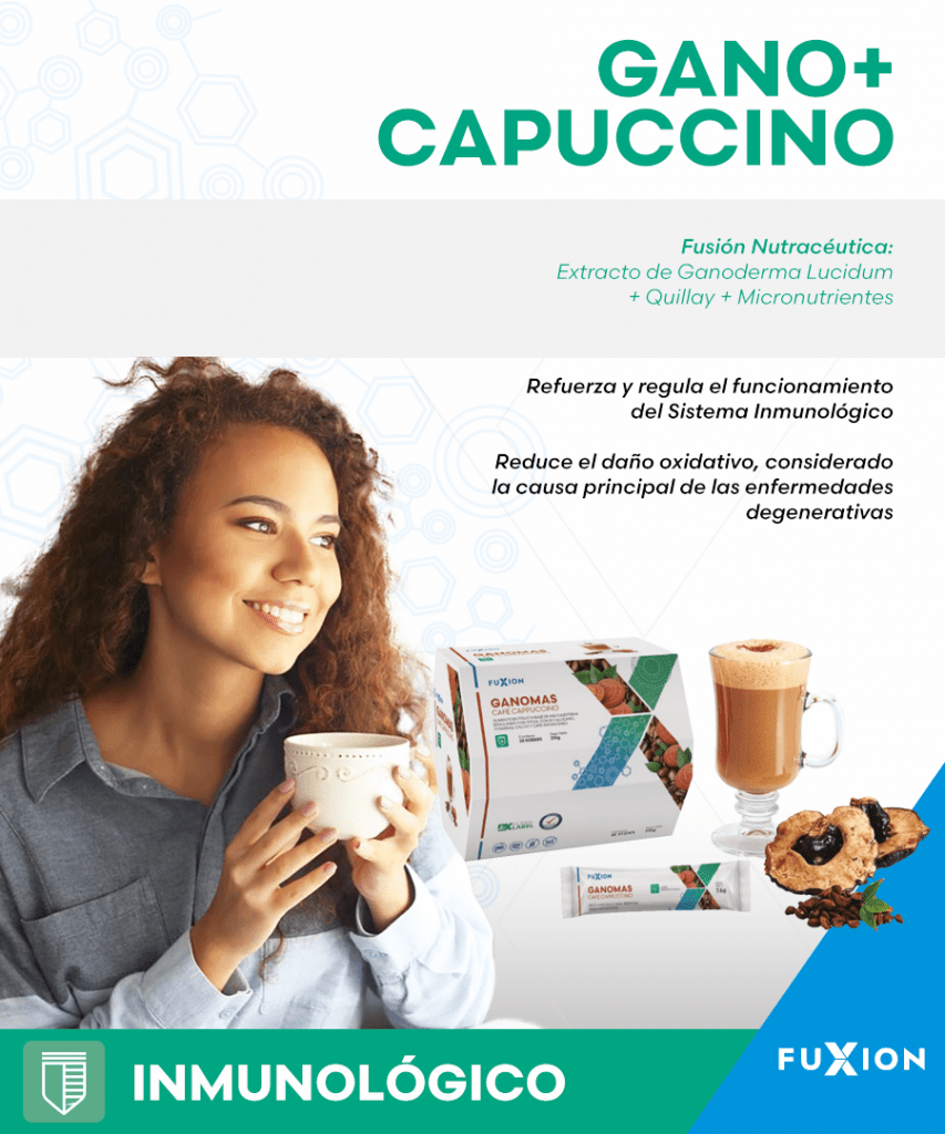 Delicioso Café Capuccino enriquecido con Ganoderma Lucidum, creado por FuXion para reforzar tu Sistema Inmunológico y prevenir enfermedades degenerativas.