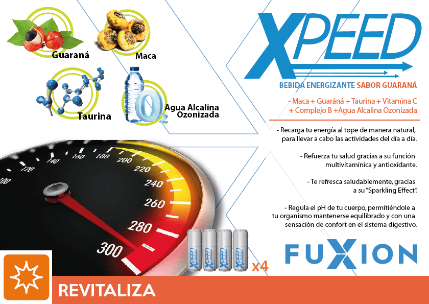 XPEED es el energizante natural sabor a guaraná que te da la energía y efervescencia que necesitas para vivir tu día al máximo, de manera sana. Su aporte de agua alcalina sumado a su burbujeante frescura “Sparkling Effect” te ayuda a regular el pH de tu cuerpo y mantenerlo en equilibrio.